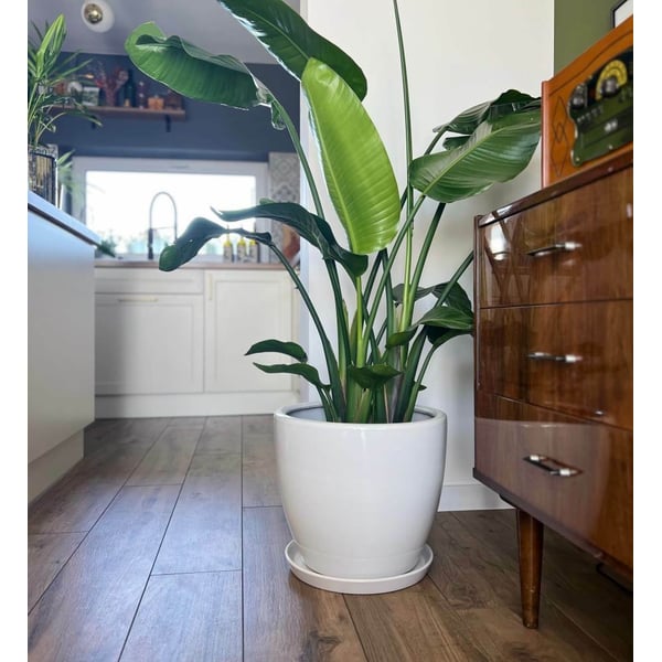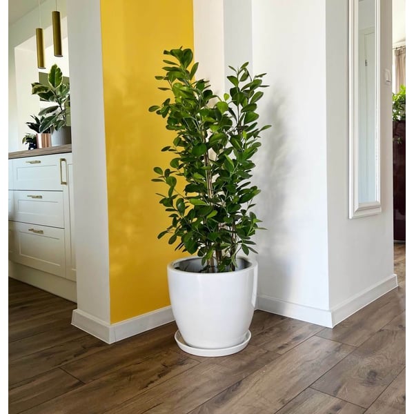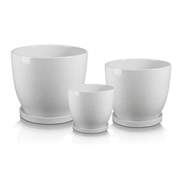 Set od 3 velike okrugle posude s uključenom podlogom. Proizvod je izrađen od debele glazirane keramike. Osnovni materijal za pečenje je terakota, koja se zatim glazira. Glazura pokriva cijelu podlogu, vanjski dio posude i unutarnji dio do standardne razine (cca 10 cm od gornjeg ruba). Preostali unutarnji dio nije prekriven glazurom. Tipično, ovaj dio nije vidljiv nakon sadnje i ne utječe negativno na vizualni izgled. Posuda je jednostavnog oblika, vrlo funkcionalnog dizajna (omogućuje puno prostora za korijenski sustav) i bez ukrasa. Stilski je svestran i prikladan kako za klasične tako i za moderne prostore. Za više informacija pogledajte odjeljak tehničkih specifikacija. Proizvodi su ručni rad i stvarne dimenzije mogu malo odstupati od deklariranih (+/- 5%). Na dnu je pripremljena drenažna rupa za otjecanje viška vode.