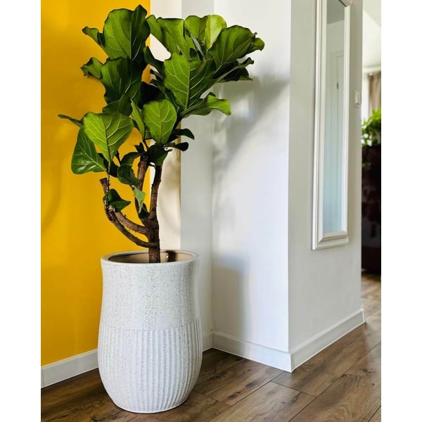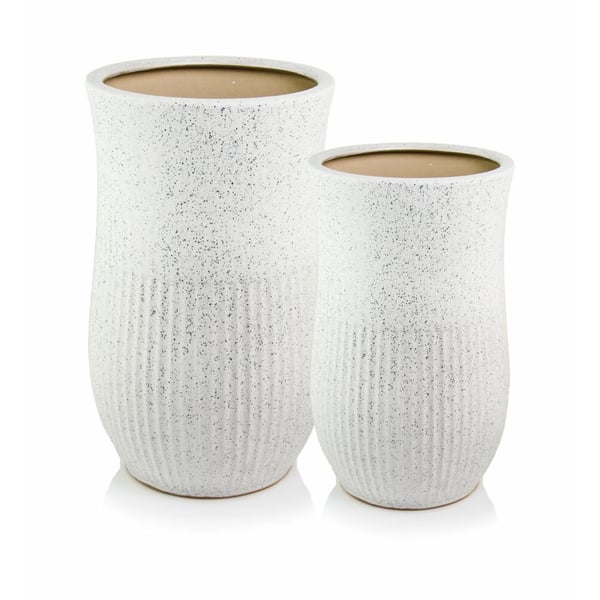 Visoka posuda s okruglom bazom u obliku tulipana izrađena je od glazirane keramike, što joj daje iznimnu izdržljivost i eleganciju. Suptilne okomite pruge krase donju polovicu žardinjere, dodajući karakter i jedinstvenost. Gornja polovica površine je glatka, stvarajući prekrasan kontrast s uzorkom na dnu. Mat finiš privlači pozornost, dok bijela boja s nježnim točkastim akcentima stvara trendovski teraco efekt koji nadopunjuje bilo koju vrstu dekora. Posuda dolazi s opcijskim sustavom odvodnje - ima rupu koja se može zatvoriti vodootpornim čepom - ovisno o namjeni, rupa se može probušiti ili ostaviti zatvorenom. Sa svojim svestranim dizajnom, ova posuda vam omogućuje stvaranje zadivljujućih biljnih kompozicija i ukrašavanje vašeg prostora na jedinstven način. Set uključuje dvije posude žardinjere. Više informacija možete pronaći u kartici tehnički podaci. Imajte na umu da su ovi proizvodi ručno izrađeni i stvarne dimenzije mogu malo odstupati (+/- 5%).
