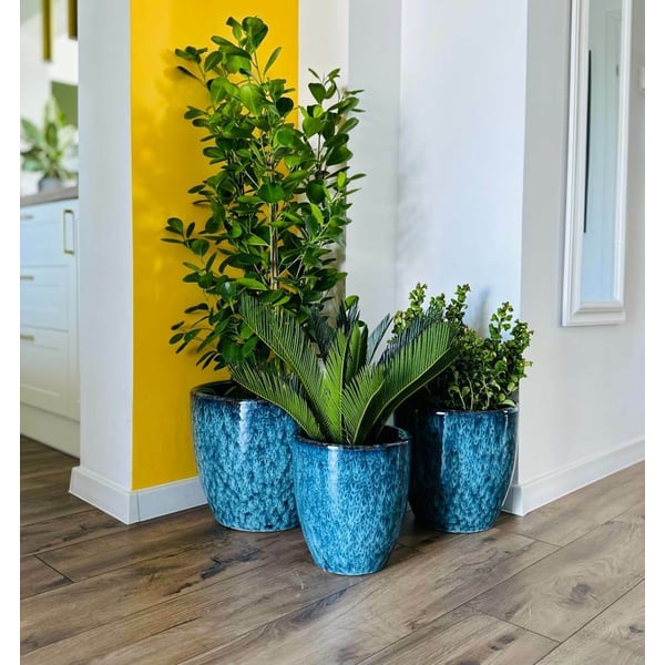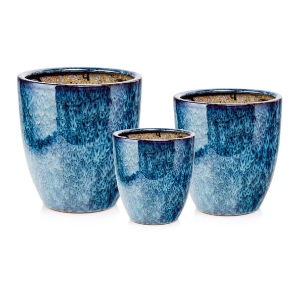 Posuda za biljke s okruglim postoljem izrađena je od glazirane keramike, što joj daje iznimnu izdržljivost i eleganciju. Cijela površina žardinjere je glatka i sjajna, s prirodno oblikovanim prugama koje je čine jedinstvenom i jedinstvenom. Duboka i bogato zasićena plava boja svakom će interijeru dodati dašak klase i sofisticiranosti. Sadilice dolaze u kompletu od tri. Više informacija možete pronaći u kartici tehnički podaci. Ovi proizvodi su ručne izrade i stvarne dimenzije mogu malo odstupati od deklariranih (+/- 5%).