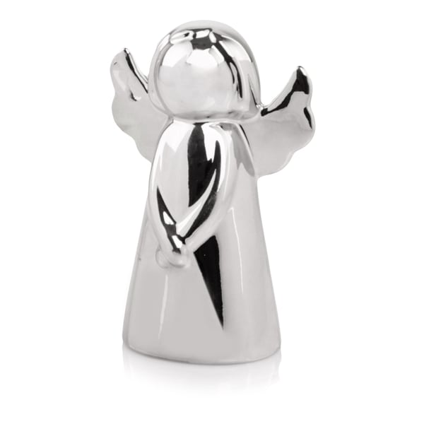 Figurica u obliku anđela. Predmet je izrađen od keramike tankih stijenki i dorađen visokokvalitetnom zrcalno-srebrnom glazurom. Više informacija možete pronaći u kartici tehnički podaci. Proizvodi su ručni rad i stvarne dimenzije mogu malo odstupati od deklariranih (+/- 5%).