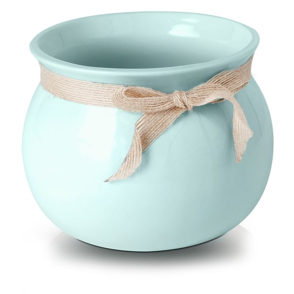 Okrugla keramička posuda bačvastog oblika ukrašen vrpcom. Proizvod je izrađen od glazirane keramike. Proizvodi su ručni rad i stvarne dimenzije mogu malo odstupati od deklariranih (+/- 5%).