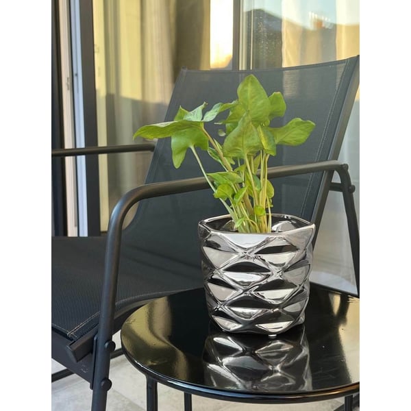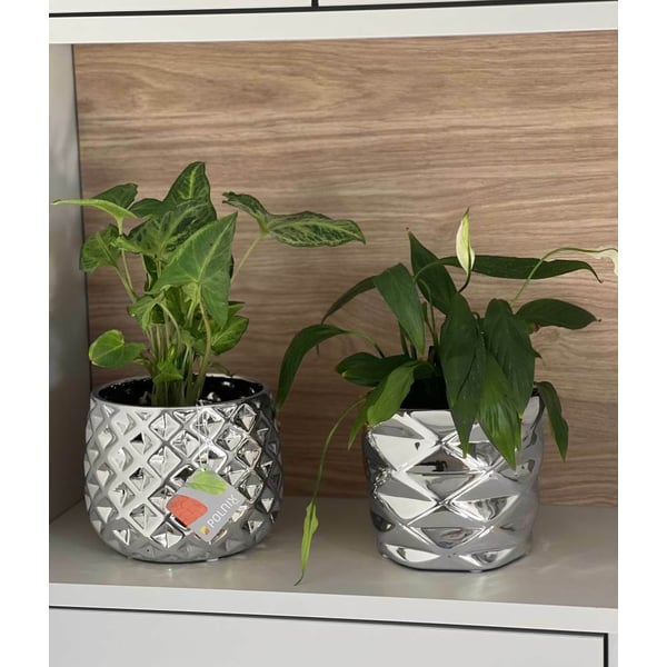 Okrugla posuda. Zahvaljujući procesu pocinčavanja, površina proizvoda je glatka i reflektira okolinu poput zrcala. Zidovi su ukrašeni geometrijskim uzorcima. Elektrolitičko srebro, dajući metalni karakter, prekriva cijelu površinu predmeta. Artikli kolekcije Moon stilski su detalji koji stvaraju ekskluzivnu atmosferu u glamuroznom stilu. Stvoreni su s klijentima koji cijene ljepotu i estetiku na umu. Više informacija možete pronaći u kartici tehnički podaci. Proizvodi su ručni rad i stvarne dimenzije mogu malo odstupati od deklariranih (+/- 5%).