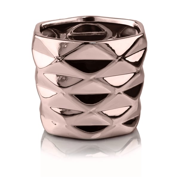 Okrugla posuda bakreno zlato (galvanizirano). Artikl je izrađen od keramike tankih stijenki i završne obrade visokokvalitetnom zrcalno zlatnom glazurom. Zahvaljujući procesu pocinčavanja, površina proizvoda je glatka i reflektira okolinu poput zrcala. Nijansa zlatne boje naziva se bakreno zlato. Elektrolitičko zlato, dajući metalni karakter, prekriva cijelu površinu proizvoda, uključujući i unutrašnjost. Zidovi su ukrašeni geometrijskim uzorcima. Više informacija možete pronaći u kartici tehnički podaci. Proizvodi su ručni rad i stvarne dimenzije mogu malo odstupati od deklariranih (+/- 5%).