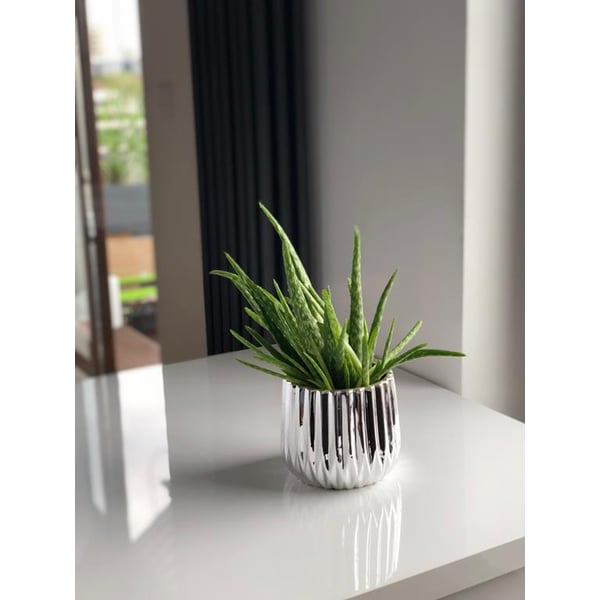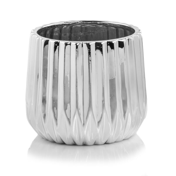 Okrugla, zdepasta posuda, nježno sužena prema vrhu. Artikal je izrađen od keramike tankih stijenki i završne obrade visokokvalitetnom zrcalno-srebrnom glazurom. Zahvaljujući procesu galvanizacije, površina proizvoda je glatka i reflektira okolinu poput zrcala. Zidovi posude su ukrašeni geometrijskim uzorcima. Elektrolitičko srebro, dajući metalni karakter, prekriva cijelu površinu predmeta. Artikli kolekcije Moon stilski su detalji koji stvaraju ekskluzivnu atmosferu u glamuroznom stilu. Stvoreni su s klijentima koji cijene ljepotu i estetiku na umu. Više informacija možete pronaći u kartici tehnički podaci. Proizvodi su ručni rad i stvarne dimenzije mogu malo odstupati od deklariranih (+/- 5%).