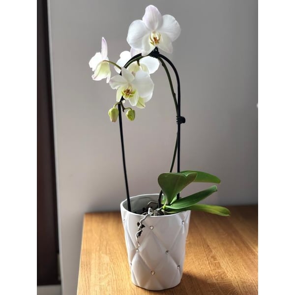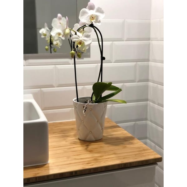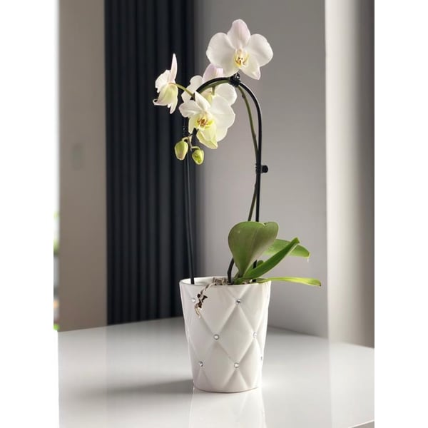 Okrugla glamour posuda. Posuda je dizajnirana tako da odgovara standardnim veličinama orhideja - vanjski dijelovi su suženi, što omogućuje da se plastični proizvodni poklopac zaustavi na višoj točki, ostavljajući dovoljno prostora za višak vode ispod. Izrađena je od visokokvalitetne delikatne keramike tankih stijenki - dolomita. Artikli iz ove kolekcije stilski su detalji koji stvaraju ekskluzivan ugođaj u glamuroznom stilu. Posude s prekrasno svjetlucavim elementima svidjet će se ljubiteljima elegantnog uređenja i bit će zanimljiv dodatak dnevnom boravku, spavaćoj sobi ili kupaonici. Keramičke žardinjere s cirkonijevim kristalima koriste se za uzgoj sobnih biljaka, ali ne samo to! Možete ih koristiti na mnogo različitih načina. Kako? Na primjer, stavljanjem lijepog buketa u ukrasni pokrov ili skrivanjem sitnih sitnica i sitnica za koje je uvijek teško pronaći dobro mjesto. Svjetlucavi cirkonski kristali i glazirana keramika izgledat će sjajno uz ostale glamurozne stilske dodatke. Kombinirajte ih s našim preporučenim baršunastim jastucima, kristalnim vazama, zlatnim svijećnjacima ili ukrasnim ogledalom. Učinak će vas sigurno oduševiti! Odaberite samo jedan model ili kreirajte vlastiti blistavi set od keramike! Naši preporučeni dodaci dostupni su u nekoliko stilskih verzija, boja i oblika. Više informacija možete pronaći u kartici tehnički podaci. Proizvodi su ručni rad i stvarne dimenzije mogu malo odstupati od deklariranih (+/- 5%).