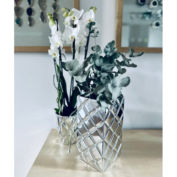 Vaza s kvadratnom bazom. U proizvodnom procesu korištena je visokokvalitetna delikatna keramika tankih stijenki - dolomit. Artikli iz ove kolekcije stilski su detalji koji stvaraju ekskluzivnu glamuroznu atmosferu. Posude s prekrasno svjetlucavim elementima svidjet će se ljubiteljima elegantnog uređenja i bit će zanimljiv dodatak dnevnom boravku, spavaćoj sobi ili kupaonici. Keramičke posude s cirkonima namijenjene su uzgoju sobnih biljaka, ali ne samo! Možete ih koristiti na mnogo različitih načina. Kako? Na primjer, stavljanjem prekrasnog buketa u ukrasni pokrov ili skrivanjem sitnih sitnica i drangulija za koje je uvijek teško pronaći dobro mjesto. Svjetlucavi cirkoni i glazirana keramika izgledat će sjajno u društvu drugih glamuroznih dodataka. Naše preporučene žardinjere uskladite s baršunastim jastucima, kristalnim vazama, zlatnim svijećnjacima ili ogledalom u ukrašenom okviru. Učinak će vas sigurno oduševiti! Odaberite samo jedan model ili kreirajte vlastiti blistavi set od keramike! Preporučene dodatke možete naručiti kod nas u nekoliko stilskih verzija, boja i oblika. Više informacija možete pronaći u kartici tehnički podaci. Proizvodi su ručni rad i stvarne dimenzije mogu malo odstupati od deklariranih (+/- 5%).