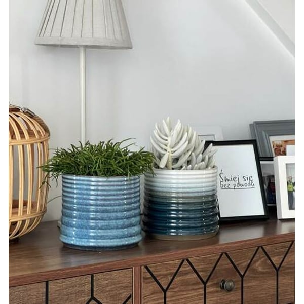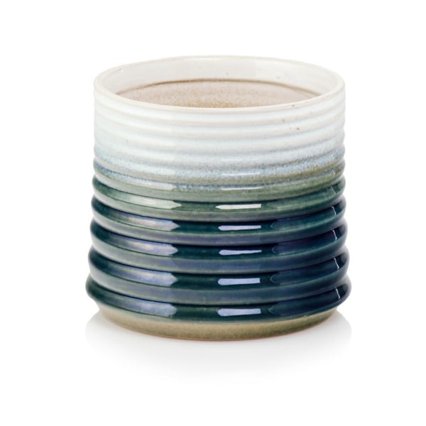 Posuda u obliku cilindra od glazirane keramike. Žaksija se ističe svojom bogatom paletom boja, duboko tamnoplavom, svježom zelenom i nježnom bijelom. Ove kombinirane boje stvaraju upečatljiv uzorak u obliku vodoravnih pruga, dajući interijeru jedinstven karakter. Naša žardinjera bit će savršena za interijere doma. Možete ga postaviti na prozorsku dasku, stol, stvarajući jedinstvenu žarišnu točku zajedno s upečatljivom biljkom. Više informacija možete pronaći u kartici tehnički podaci. Proizvodi su ručno izrađeni i stvarne dimenzije mogu malo odstupati od deklariranih (+/- 5%).