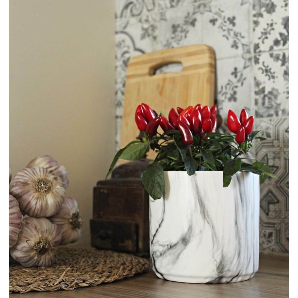 Okrugla keramička žardinjera savršeno je rješenje za interijer koji spaja estetiku i funkcionalnost. Žardinjera odlikuje se jedinstvenom gradijentnom bojom u kojoj prevladava klasična bijela, koja podsjeća na teksturu mramora. Naša žardinjera također je izvrstan poklon za ljubitelje dizajna i biljaka. Više informacija možete pronaći u kartici Tehničke karakteristike Proizvodi su ručni rad i stvarne dimenzije mogu malo odstupati od deklariranih (+/- 5%).