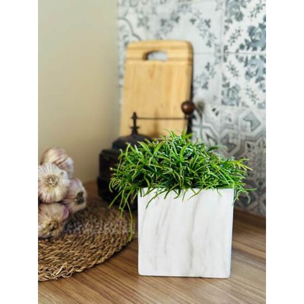 Četvrtasta keramička posuda savršeno je rješenje za interijer koji spaja estetiku i funkcionalnost. Posuda ima jedinstveni gradijent boje s prevladavanjem klasične bijele, koja podsjeća na teksturu mramora. Naša žardinjera također je izvrstan dar za ljubitelje dizajna i biljaka. Više informacija možete pronaći u kartici tehnički podaci. Proizvodi su ručni rad i stvarne dimenzije mogu malo odstupati od deklariranih (+/- 5%).