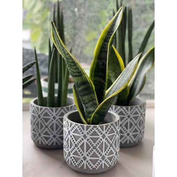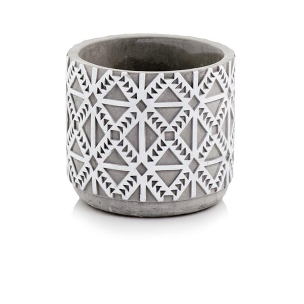 Cilindrična keramička neglazirana posuda. Materijal od kojeg je izrađena nalikuje teksturi betona - namjerne ogrebotine i udubljenja na površini. Zidovi su ukrašeni klasičnim uzorcima. Minimalizam i prirodnost su snaga i ljepota ove posude - ne opterećuje izložene biljke. Ovaj će predmet izvrsno izgledati u interijeru u kojem dominiraju dodaci i ukrasi u duhu trendovskog boho stila ili pak u modernijem okruženju. Predstavljena posuda služi kao ukras - biljke se ne smiju saditi izravno u nju. Više informacija možete pronaći u kartici tehnički podaci. Proizvodi su ručni rad i stvarne dimenzije mogu malo odstupati od deklariranih (+/- 5%).