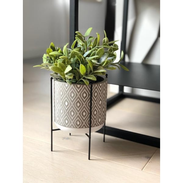 Cilindrična keramička posuda. Materijal od kojeg je izrađen podsjeća na teksturu betona - brojne ogrebotine i pore na površini namjerni su elementi dizajna. Minimalizam i prirodnost snaga su i ljepota ove navlake za lonce - ona ne nadjačava biljke izložene unutar nje. Ovaj će članak izgledati sjajno u interijerima s boho vibrom ili među modernijim uređenjem. Predstavljeni poklopac lonca služi kao ukrasni štit - biljke se ne smiju saditi izravno u njega. Više informacija možete pronaći u kartici tehničke specifikacije. Proizvodi su ručni rad i stvarne dimenzije mogu malo odstupati od deklariranih (+/- 5%).