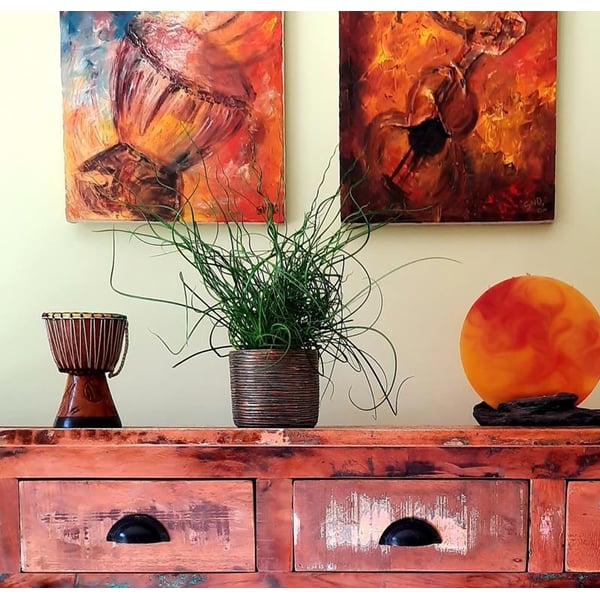 Keramička posuda za biljke u obliku cilindra, originalne teksture koja stvara prekrasan efekt starog, ali još uvijek sjajnog, bakrenog zlata. Na poklopac može stati biljka srednje veličine - poput orhideje, sansevierie poput mača ili prijateljske i poznate paprati. Predstavljena posuda služi kao ukrasni pokrov - biljke se ne smiju saditi izravno u nju. Više informacija možete pronaći u kartici tehnički detalji. Proizvodi su ručni rad i stvarne dimenzije mogu malo odstupati od deklariranih (+/- 5%).