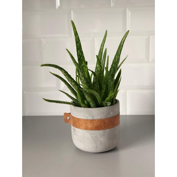 Keramička posuda u obliku klasičnog cilindra, dodatno omotana kožnim remenom s metalnom kopčom. Materijal od kojeg je izrađen podsjeća na teksturu betona - brojne ogrebotine i mrlje na površini su namjerne. Minimalizam i prirodnost su snaga i ljepota ove posude - ne nadmašuje biljke izložene u njoj. Ovaj će predmet izgledati sjajno u interijeru u kojem dominiraju dodaci u boho stilu ili usred modernijeg ambijenta. Prikazani lonac služi kao ukrasni pokrov - u njega se ne smiju izravno saditi biljke. Više informacija možete pronaći u kartici tehnički podaci. Proizvodi su ručni rad i stvarne dimenzije mogu malo odstupati od deklariranih (+/- 5%).