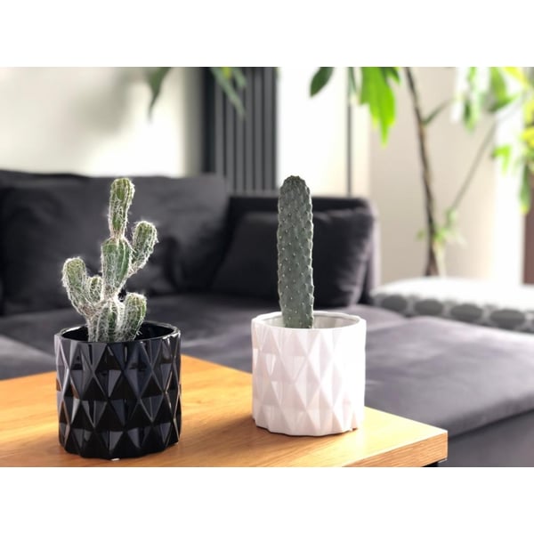 Cilindrična posuda. Proizvod je izrađen od glazirane keramike. Zidovi posude su ukrašeni geometrijskim uzorcima. Više informacija možete pronaći u kartici tehnički podaci. Proizvodi su ručni rad i stvarne dimenzije mogu malo odstupati od deklariranih (+/- 5%).