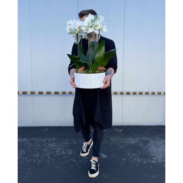 Niska posuda (zdjela) okruglog postolja izrađena od specijalne lagane keramike (dolomit) i glazirana iznutra i izvana. Sadilica je dizajnirana u modernom i nekonvencionalnom stilu, posebno za 3 orhideje (plastična proizvodna posuda standardne veličine). Naravno, posuda se može koristiti i za uzgoj drugih biljaka, kao posuda za cvjetne aranžmane ili jednostavno kao zdjela za odlaganje raznih stvari. Za više informacija pogledajte odjeljak tehničkih specifikacija. Ovi proizvodi su ručni rad i stvarne dimenzije mogu malo odstupati od navedenih (+/- 5%).