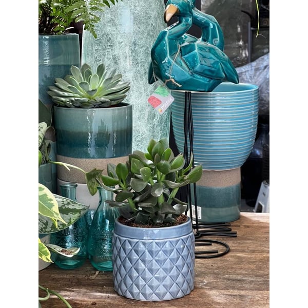 Keramička posuda vrlo zanimljivog, nekonvencionalnog oblika. Vanjska površina je glazirana i prekrivena geometrijskim uzorcima. Više informacija možete pronaći u kartici tehnički podaci. Proizvodi su ručni rad i stvarne dimenzije mogu malo odstupati od deklariranih (+/- 5%).
