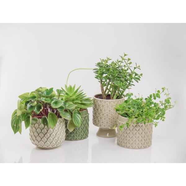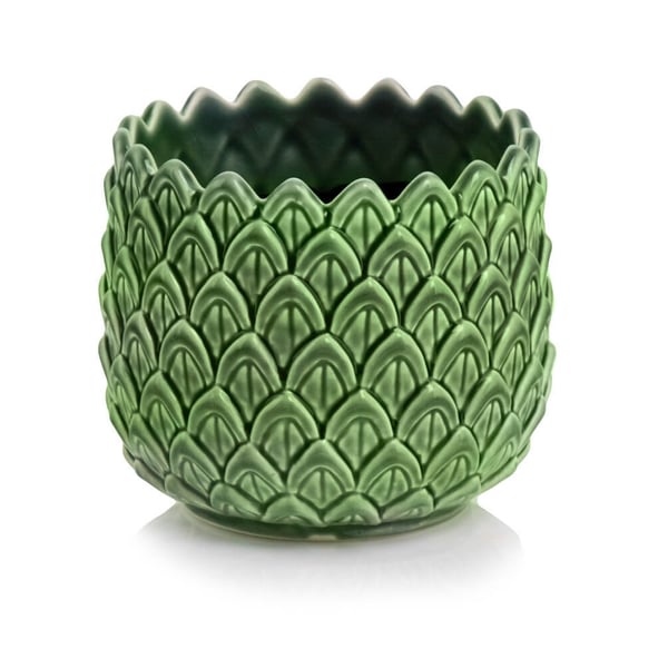 Okrugla keramička posuda zanimljivog oblika, lagano se sužava prema vrhu. Njegov jedinstveni šarm naglašen je odvažnim, stiliziranim uzorkom koji podsjeća na lišće i nazubljenim rubom. Više informacija možete pronaći u kartici tehnički podaci. Proizvodi su ručni rad i stvarne dimenzije mogu malo odstupati od deklariranih (+/- 5%).