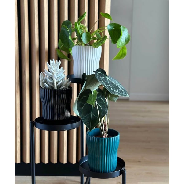 Okrugla tegla izrađena od glazirane keramike koja daje elegantan i sofisticiran izgled. Karakterističnog je nepravilnog oblika koji privlači pažnju. Žandarmerija ima dekorativne elemente - okomite pruge, koje daju dašak modernosti. Možete ga koristiti za izlaganje cvijeća, lončanica ili čak kao ukras bez biljaka. Više informacija možete pronaći u kartici tehničke specifikacije. Proizvodi su ručne izrade i stvarne dimenzije mogu malo odstupati od deklariranih (+/- 5%).