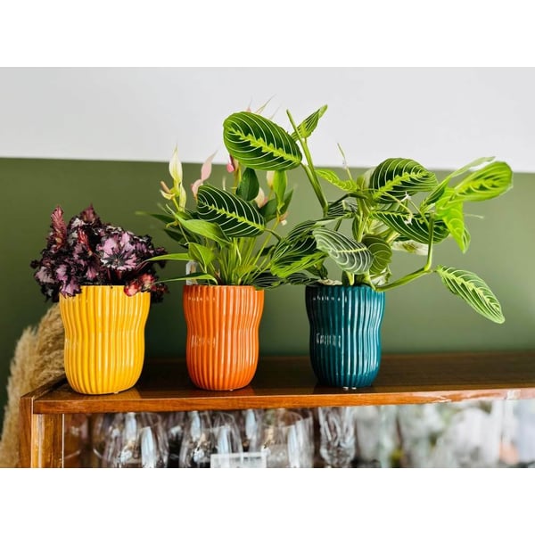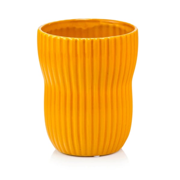 Okrugla tegla izrađena od glazirane keramike koja daje elegantan i sofisticiran izgled. Karakterističnog je nepravilnog oblika koji privlači pažnju. Žandarmerija ima dekorativne elemente - okomite pruge, koje daju dašak modernosti. Možete ga koristiti za izlaganje cvijeća, lončanica ili čak kao ukras bez biljaka. Više informacija možete pronaći u kartici tehničke specifikacije. Proizvodi su ručne izrade i stvarne dimenzije mogu malo odstupati od deklariranih (+/- 5%).