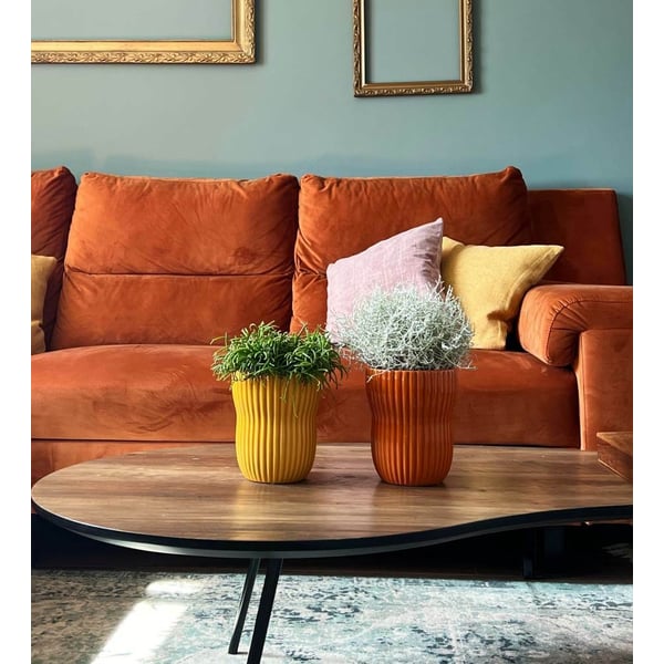 Okrugla tegla izrađena od glazirane keramike koja daje elegantan i sofisticiran izgled. Karakterističnog je nepravilnog oblika koji privlači pažnju. Žandarmerija ima dekorativne elemente - okomite pruge, koje daju dašak modernosti. Možete ga koristiti za izlaganje cvijeća, lončanica ili čak kao ukras bez biljaka. Više informacija možete pronaći u kartici tehničke specifikacije. Proizvodi su ručne izrade i stvarne dimenzije mogu malo odstupati od deklariranih (+/- 5%).