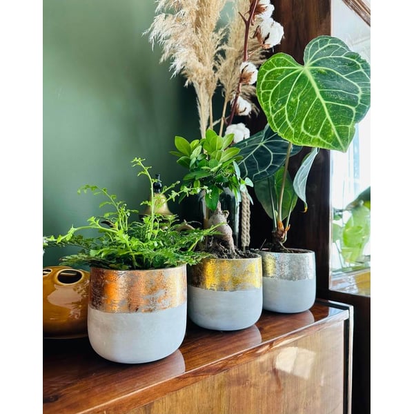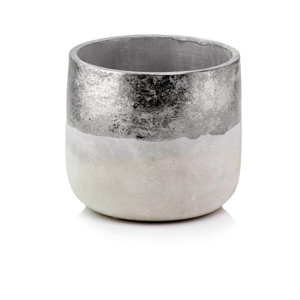 Okrugla keramička posuda. Dominantna mat siva boja daje loncu sirovi, industrijski karakter, dok sjajna srebrna gornja površina dodaje moderan šarm. Ova posuda savršeno je rješenje za tradicionalne i moderne interijere. Njegov minimalistički dizajn omogućuje da se uskladi s različitim stilovima uređenja. Više informacija možete pronaći u kartici tehnički podaci. Proizvodi su ručni rad i stvarne dimenzije mogu malo odstupati od deklariranih (+/- 5%).