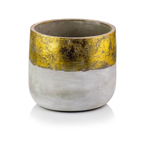 Okrugla keramička posuda. Dominantna mat siva boja daje loncu sirovi, industrijski karakter, dok gornja sjajna površina u bakreno zlatnoj boji daje dašak modernog šarma. Ova posuda savršeno je rješenje za tradicionalne i moderne interijere. Njegov minimalistički dizajn omogućuje da se uskladi s različitim stilovima uređenja. Više informacija možete pronaći u kartici tehnički podaci. Proizvodi su ručni rad i stvarne dimenzije mogu malo odstupati od deklariranih (+/- 5%).