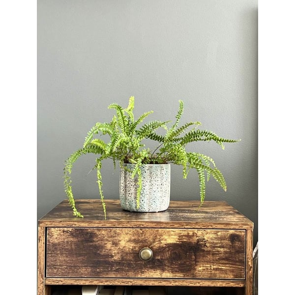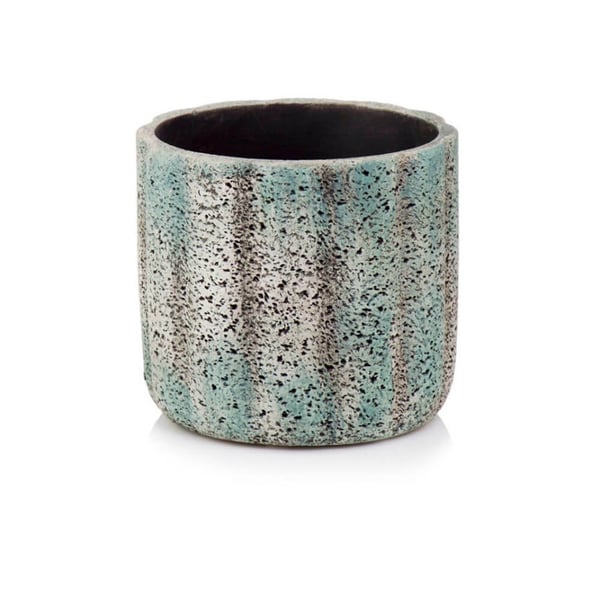 Okrugla keramička posuda. Lonac se ističe svojim neobičnim dizajnom. Međuigra sivih, plavih i crnih točkica stvara mozaik koji privlači poglede i daje prostoru jedinstven karakter. Okomita ispupčenja dodaju loncu nekonvencionalan i originalan izgled. Predstavlja sirov i minimalistički stil koji se savršeno slaže s modernim interijerima. Više informacija možete pronaći u kartici tehnički podaci. Proizvodi su ručni rad i stvarne dimenzije mogu malo odstupati od deklariranih (+/- 5%).