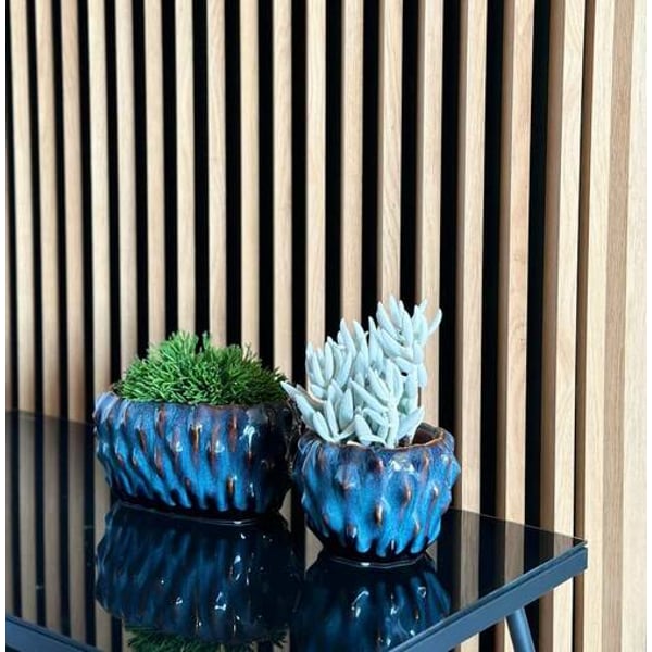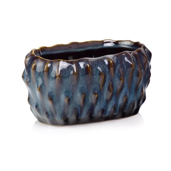 Ovalne glazirane keramičke posude. Njegova ostakljena površina sjaji u nijansama smeđe i plave, stvarajući nevjerojatno upečatljiv kontrast. Ima stršeće šiljke posvuda, što mu daje jedinstven karakter. Posuda ima brojne nesavršenosti i pukotine u glazuri (pucketanje), delikatna udubljenja i nepravilnosti - namjerna tehnika koja keramici dodaje šarm i jedinstvenost. Ovi suptilni elementi dodaju moderan štih i privlače pažnju. U nju možete postaviti svoje omiljene biljke ili cvijeće, stvarajući prekrasne aranžmane. Našu žardinjeru ne samo da ćete cijeniti, već ćete također biti savršen poklon za ljubitelje dizajna i vrtlarstva. Više informacija možete pronaći u kartici tehničke specifikacije. Proizvodi su ručni rad te stvarne dimenzije mogu neznatno odstupati od deklariranih (+/- 5%).