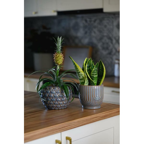 Okrugla žardinjera izrađena od glazirane keramike koja daje postojanost i jedinstveni sjaj. Površina proizvoda prekrivena je nježnim uzorkom koji podsjeća na riblje ljuske. Ovakav izgled daje joj poseban karakter i izdvaja je od ostalih žardinjera. Proizvod dolazi u mješavini nježno plave boje s nijansama smeđe. Posuda ima brojne nesavršenosti glazure kao što su pukotine, delikatna udubljenja i neravnine - ova namjerna tehnika dodaje šarm i jedinstvenost keramici. To je savršena posuda za sadnju vaših omiljenih biljaka, dodajući šarm i eleganciju svakom interijeru. Više informacija možete pronaći u kartici tehnički podaci. Proizvodi su ručni rad i stvarne dimenzije mogu neznatno odstupati od deklariranih (+/- 5%).