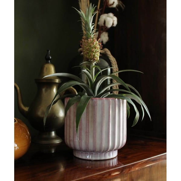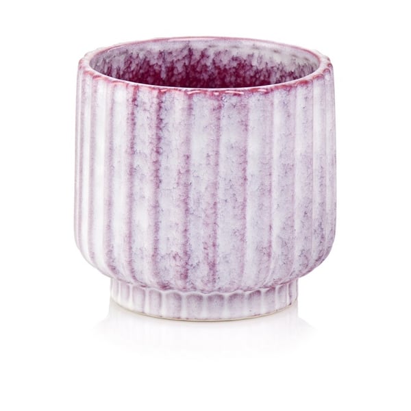 Posuda izrađena od kvalitetne glazirane keramike. Njegova sjajna površina reflektira svjetlost i stvara impresivne refleksije. Dno žardinjere je suženo, što mu daje osjećaj laganosti. Svijetloružičasta boja prošarana je nježnim nijansama bijele, dodajući suptilnost i stil. Posuda se ističe svojim okomitim izbočinama i nježnim prugama, što joj daje jedinstven karakter. Lonac ima brojne nesavršenosti glazure kao što su pukotine, delikatna udubljenja i neravnine - namjerne tehnike koje keramici daju šarm i jedinstvenost. Čvrsta baza osigurava stabilnost. Možete ga postaviti na bilo koje mjesto u vašem domu ili uredu. Više informacija možete pronaći u kartici tehničke specifikacije. Ovi proizvodi su ručni rad i stvarne dimenzije mogu malo odstupati od deklariranih (+/- 5%).