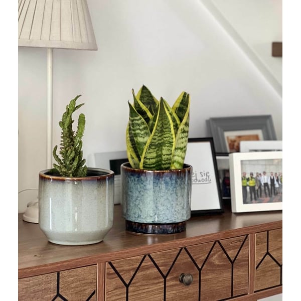 Okrugla posuda izrađena od visokokvalitetne keramike, pažljivo glazirana za postizanje suptilnog efekta sjajne površine. Njegova tamnoplava nijansa s nježnim nijansama daje jedinstven karakter. Dno lonca je zašiljeno, što mu daje lagan i prozračan dojam. Ukrašeni rub mu daje još više šarma. Naša posuda ima čvrstu podlogu, što osigurava stabilnost čak i za veće biljke. Ne morate brinuti da će se prevrnuti. Proizvod može imati brojne nesavršenosti glazure kao što su pukotine, osjetljiva udubljenja i neravnine - namjerne značajke koje keramici daju ručno izrađen i jedinstven izgled. Ova će teglica biti savršena za svaku prostoriju, bilo da se radi o dnevnoj sobi, spavaćoj sobi ili uredu. To je savršen način da svom okruženju dodate dašak prirode i elegancije. Za više informacija pogledajte karticu tehničkih specifikacija. Ovi proizvodi su ručni rad, tako da stvarne dimenzije mogu malo odstupati od deklariranih (+/- 5%).