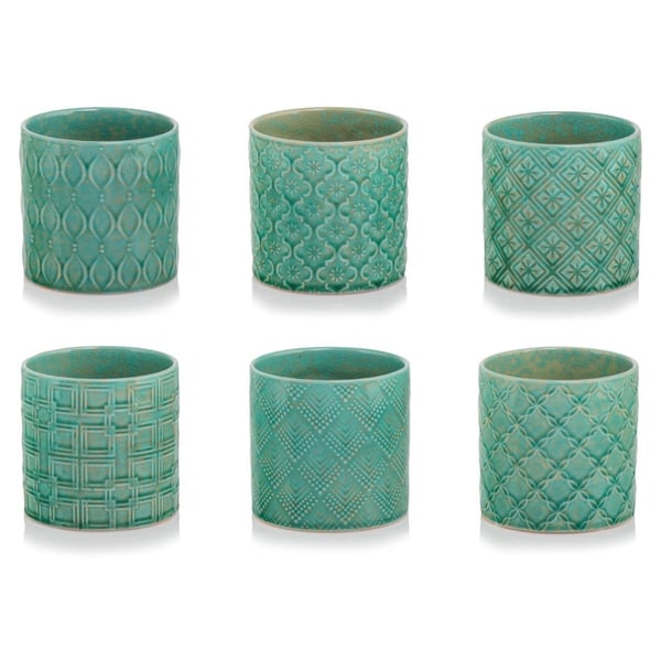 Posuda za cvijeće u obliku cilindra. Mješoviti uzorci. Tirkizna shema boja privlači poglede ljetnom atmosferom. Artikl je potpuno ostakljen i iznutra i izvana. Posuda ima brojne glazurne nesavršenosti i pukotine (crackle), delikatna udubljenja i neravnine - ova namjerna tehnika daje keramici šarm ručne izrade i jedinstvenosti. Prijedlog je za ljubitelje plemenitih nesavršenosti u nijansama plave i tirkizne, stvarajući lagani, mediteranski ugođaj. Više informacija možete pronaći u kartici tehnički podaci. Proizvodi su ručni rad i stvarne dimenzije mogu malo odstupati od deklariranih (+/- 5%).