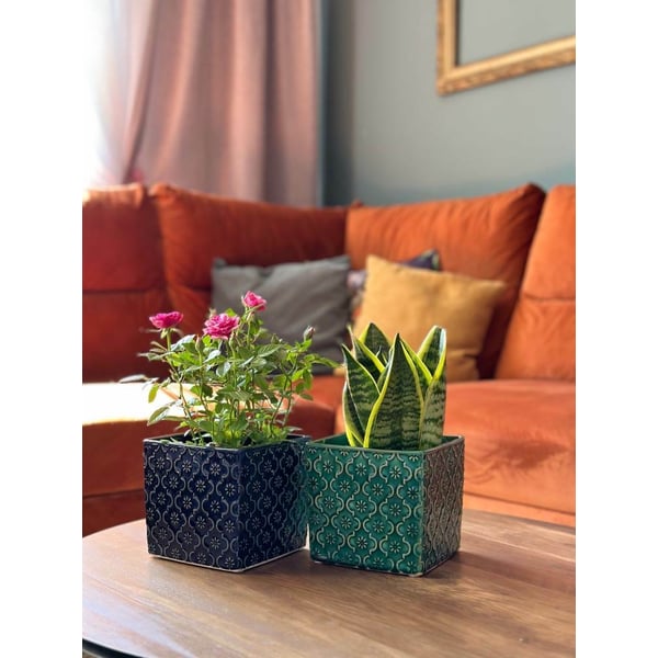 Keramička posuda četvrtastog oblika. Sofisticirani dizajn i kobalt plava boja s elegantnim diskoloracijama dodaju vizualno stari privid posudi. Artikl je potpuno ostakljen i iznutra i izvana. Boja i oblik spajaju se u kohezivnu cjelinu, čineći ga prekrasnom nadopunom biljkama u našoj okolini. Posuda ima brojne nesavršenosti glazure i pukotine (pucketanje), delikatna udubljenja i nepravilnosti - ova namjerna tehnika daje keramici šarm i jedinstvenost. Zajedno s biljkom pojačat će karakter i dati sjaj mnogim interijerima. Više informacija možete pronaći u kartici tehnički podaci. Proizvodi su ručni rad i stvarne dimenzije mogu malo odstupati od deklariranih (+/- 5%).