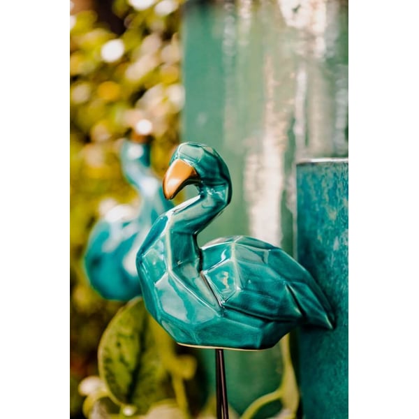Figurica u obliku flaminga. Figurica je izrađena od keramike tankih stijenki i dorađena visokokvalitetnom glazurom. Noge su izrađene od metala. Tirkizna i plava shema boja privlači pozornost svojim pomorskim ugođajem. Vintage je kolekcija namijenjena ljubiteljima jedinstvenih, ekskluzivnih rješenja. Ima jedinstvene oblike i završne obrade koji će očarati svakog estetu i ljubitelja originalnih dodataka. Više informacija možete pronaći u kartici tehnički podaci. Proizvodi su ručni rad i stvarne dimenzije mogu malo odstupati od navedenih (+/- 5%).