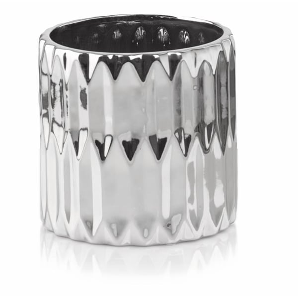 Posuda u obliku cilindra. Artikl je izrađen od keramike tankih stijenki i završne obrade visokokvalitetnom zrcalno-srebrnom glazurom. Zahvaljujući procesu galvanizacije, površina proizvoda je glatka i reflektira okolinu poput zrcala. Zidovi su ukrašeni geometrijskim uzorcima. Galvanizirano srebro, dajući proizvodu metalni karakter, prekriva cijelu površinu, uključujući i unutrašnjost. Artikli kolekcije Moon stilizirani su detalji koji stvaraju ekskluzivnu atmosferu u glamuroznom stilu. Kreirani su imajući na umu klijente koji cijene ljepotu i estetiku. Više informacija možete pronaći u odjeljku tehnički podaci. Proizvodi su ručne izrade i stvarne dimenzije mogu malo odstupati od deklariranih (+/- 5%).