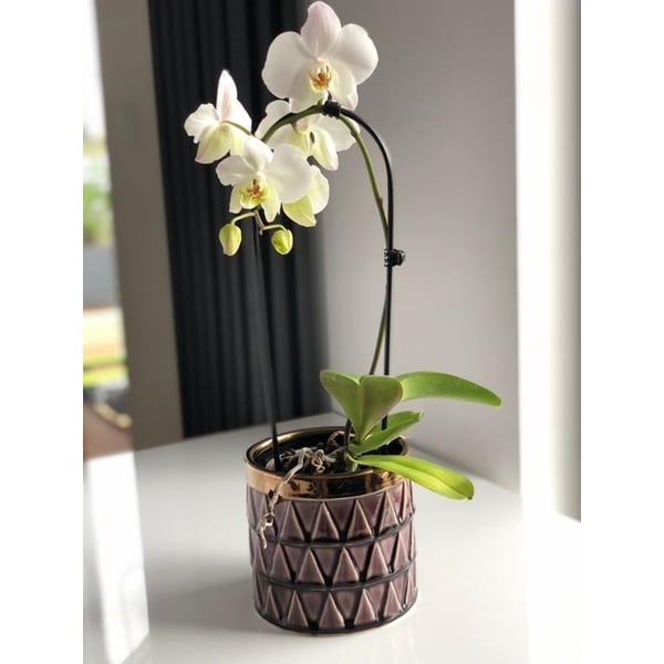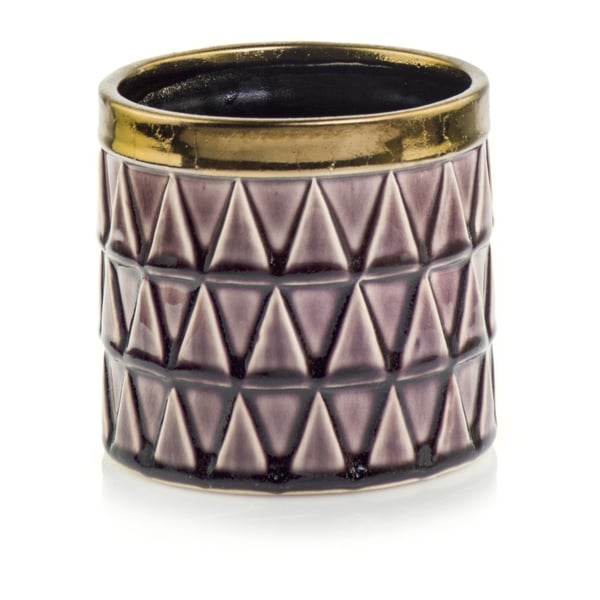 Keramička posuda u obliku cilindra. Proizvod je izrađen od visokokvalitetne glazirane keramike - gornji rub je završen tamno zlatnom bojom, dok se na središnjem dijelu nalaze geometrijski uzorci u raznim nijansama ljubičaste. Cijeli je komad ukrašen finom mrežom pukotina i sitnih rupica, dodajući dašak elegancije i jedinstvenosti. Više informacija možete pronaći u kartici tehnički podaci. Proizvodi su ručni rad pa stvarne dimenzije mogu neznatno odstupati od deklariranih (+/- 5%).