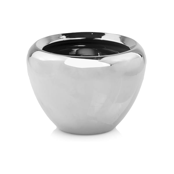 Posuda okrugle osnove od keramike tankih stijenki. Artikl je dorađen visokokvalitetnom zrcalno-srebrnom glazurom. Zahvaljujući procesu galvanizacije, površina proizvoda je glatka i reflektira okolinu poput zrcala. Elektrolitičko srebro koje daje metalni karakter prisutno je na cijeloj površini predmeta, uključujući i unutrašnjost. Lonac je dizajniran u modernom i jedinstvenom stilu, a proporcionalno širok i zaobljen rub čini ga vrlo elegantnim. Može stati veća orhideja (standardna veličina plastične proizvodne posude). Artikli kolekcije Moon stilski su detalji koji stvaraju ekskluzivnu atmosferu u glamuroznom stilu. Stvoreni su s klijentima koji cijene ljepotu i estetiku na umu. Više informacija možete pronaći u kartici tehnički podaci. Proizvodi su ručni rad, a stvarne dimenzije mogu malo odstupati od deklariranih (+/- 5%).