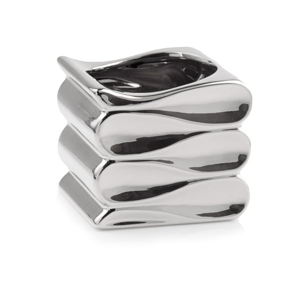 Posuda na kvadratnoj osnovi. Artikal je izrađen od keramike tankih stijenki i završne obrade visokokvalitetnom zrcalno-srebrnom glazurom. Posuda ima vrlo jedinstvenu strukturu, koja podsjeća na oceanske valove. Zahvaljujući procesu galvanizacije, površina proizvoda je glatka i reflektira okolinu poput zrcala. Elektrolitičko srebro koje mu daje metalik karakter prisutno je na cijeloj površini predmeta, uključujući i unutrašnjost. Artikli kolekcije Moon stilski su detalji koji stvaraju ekskluzivnu atmosferu u glamuroznom stilu. Kreirani su imajući na umu klijente koji cijene ljepotu i estetiku. Više informacija možete pronaći u kartici tehnički podaci. Proizvodi su ručni rad i njihove stvarne dimenzije mogu malo odstupati od deklariranih (+/- 5%).