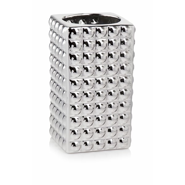 Vaza kvadratnog oblika. Artikl je izrađen od keramike tankih stijenki i dovršen visokokvalitetnom zrcalno-srebrnom glazurom. Zahvaljujući postupku galvanizacije, površina proizvoda je glatka i reflektira okolinu poput zrcala. Elektrolitsko srebro, koje daje metalni karakter, prisutno je na cijeloj površini predmeta, uključujući i unutrašnjost. Artikli kolekcije Moon stilski su detalji koji stvaraju ekskluzivnu atmosferu u glamuroznom stilu. Stvoreni su s klijentima koji cijene ljepotu i estetiku na umu. Više informacija možete pronaći u odjeljku tehnički podaci. Proizvodi su ručni rad i stvarne dimenzije mogu malo odstupati od deklariranih (+/- 5%).