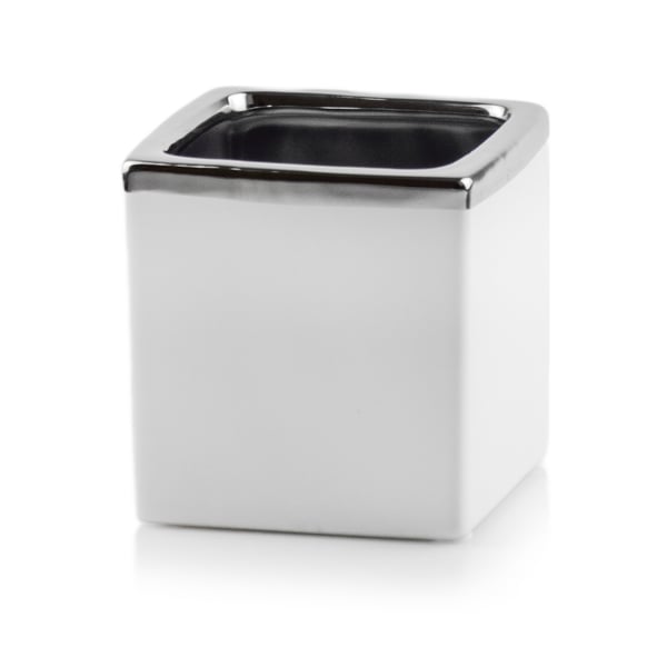Mala posuda četvrtastog oblika. Artikl je izrađen od keramike tankih stijenki i završne obrade visokokvalitetnom zrcalno-srebrnom glazurom. Zahvaljujući procesu galvanizacije, površina proizvoda je glatka i reflektira okolinu poput ogledala. Završna obrada "White & silver" - galvanizirano srebro koje daje metalik karakter, nalazi se na rubovima i unutar artikla. Preostali dio vanjske površine izrađen je bijelom glazurom. Posuda će savršeno poslužiti i kao cvjetni aranžman ili kao ukrasna posuda za razne predmete. Artikli kolekcije Moon stilski su detalji koji stvaraju ekskluzivnu atmosferu u glamuroznom stilu. Stvoreni su s klijentima koji cijene ljepotu i estetiku na umu. Više informacija možete pronaći u kartici tehnički podaci. Proizvodi su ručni rad i stvarne dimenzije mogu malo odstupati od deklariranih (+/- 5%).