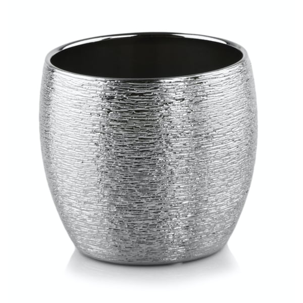 Okrugla, krupna posuda za cvijeće. Artikl je izrađen od keramike tankih stijenki i završne obrade visokokvalitetnom zrcalno srebrnom glazurom. Više informacija možete pronaći u kartici tehnički podaci. Proizvodi su ručni rad i stvarne dimenzije mogu malo odstupati od deklariranih (+/- 5%).