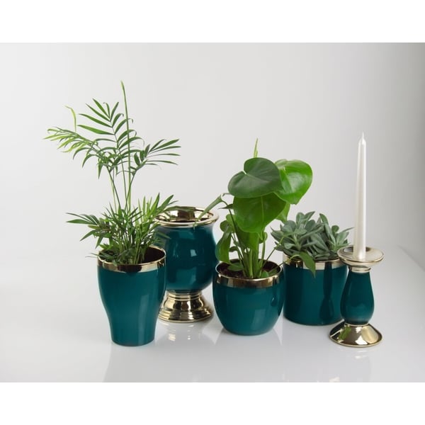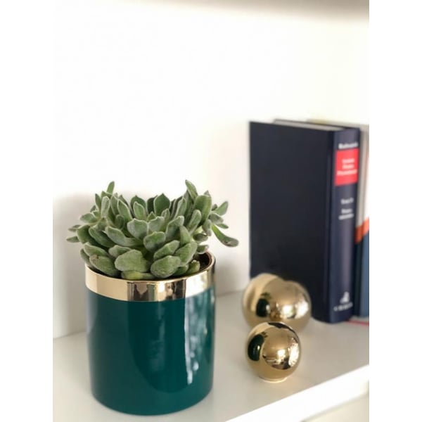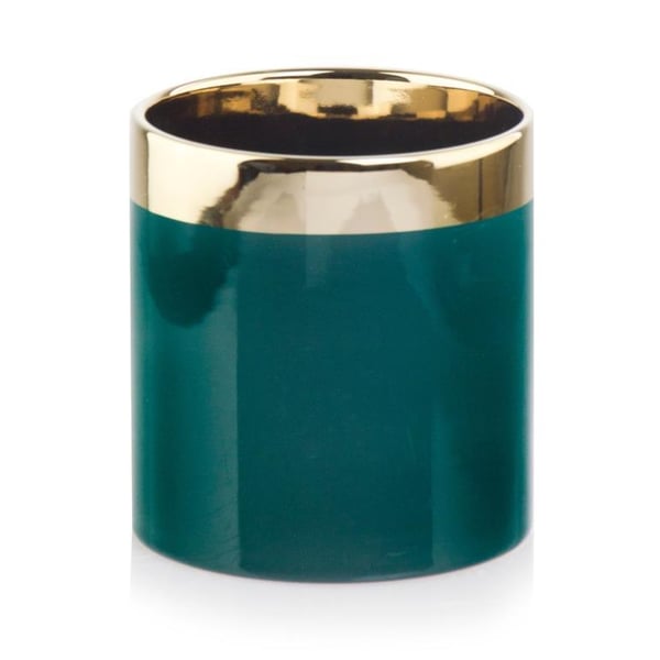 Posuda u obliku cilindra. Izrađena od glazirane keramike, dok je rub galvaniziran od keramike - što joj daje zrcalni izgled. Artikli iz kolekcije Moon ističu se ne samo svojom prekrasnom bojom inspiriranom smaragdima, već i raznolikošću oblika, a time i primjene. Namijenjeni su svima koji cijene jedinstvene i funkcionalne dodatke u svojim interijerima. Više informacija možete pronaći u kartici tehnički podaci. Proizvodi su ručni rad i stvarne dimenzije mogu neznatno odstupati od deklariranih (+/- 5%).