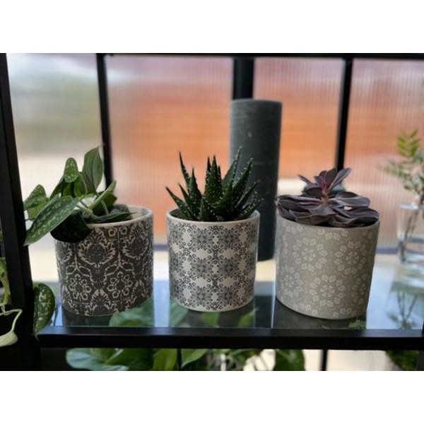 Keramičke cilindrične posude. Mješoviti uzorci. Zidovi posuda ukrašeni su klasicističkim motivima. Artikl je izrađen od neglazirane keramike. Više informacija možete pronaći u kartici tehnički podaci. Proizvodi su ručni rad i stvarne dimenzije mogu malo odstupati od deklariranih (+/- 5%).