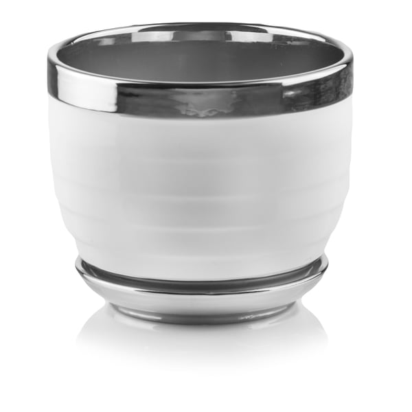 Okrugla posuda s podlogom. Artikl je izrađen od keramike tankih stijenki i završne obrade visokokvalitetnom zrcalno-srebrnom glazurom. Zahvaljujući procesu galvanizacije, površina proizvoda je glatka i reflektira okolinu poput ogledala. Završna obrada "Bijelo i srebrno" - galvanizirano srebro koje daje metalik karakter, nalazi se na rubovima i unutar artikla. Preostali dio vanjske površine izrađen je od bijele glazure. Lonac ima drenažni otvor i na njega pričvršćeno fiksno postolje. Predmeti iz kolekcije Moon stilski su detalji koji stvaraju ekskluzivan ugođaj u glamur stilu. Kreirani su imajući na umu klijente koji posebno cijene ljepotu i estetiku.