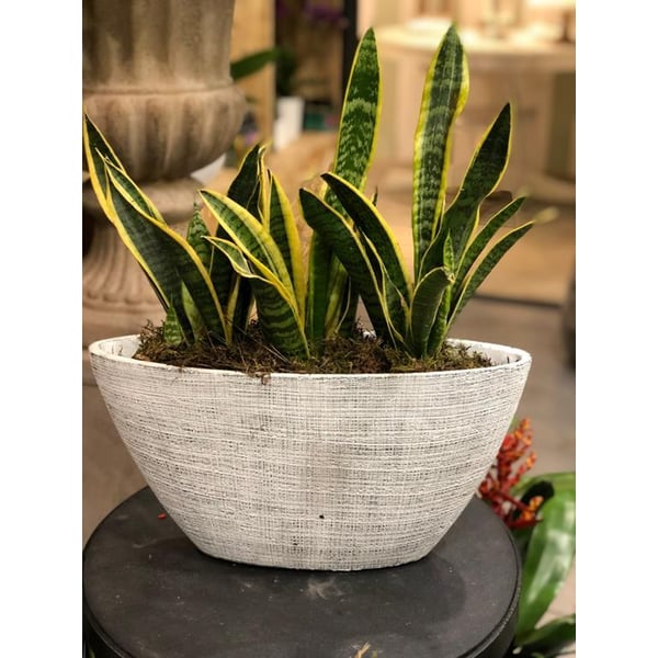 Visoka posuda u obliku čamca. Materijal od kojeg je izrađena podsjeća na teksturu betona - namjerno su stvorene brojne ogrebotine i udubljenja na površini. Ovaj će predmet izgledati sjajno u interijeru u kojem dominiraju dodaci u boho stilu ili pak u modernijem okruženju. Više informacija možete pronaći u kartici tehnički podaci. Proizvodi su ručni rad i stvarne dimenzije mogu malo odstupati od deklariranih (+/- 5%).