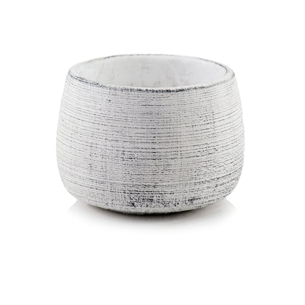 Keramička posuda zanimljivog ispupčenog, suženog oblika. Materijal od kojeg je izrađena nalikuje teksturi betona - brojne abrazije i pore na površini su namjerne. Minimalizam i prirodnost su snaga i ljepota ove posude za biljke - ona ne nadmašuje biljke izložene u njoj. Ovaj će proizvod izgledati sjajno u interijeru u kojem dominiraju dodaci inspirirani boho stilom ili u modernijem okruženju. Predstavljena posuda služi kao ukrasni pokrov - biljke se ne smiju saditi izravno u nju. Više informacija možete pronaći u kartici tehnički podaci. Proizvodi su ručni rad i stvarne dimenzije mogu malo odstupati od deklariranih (+/- 5%).