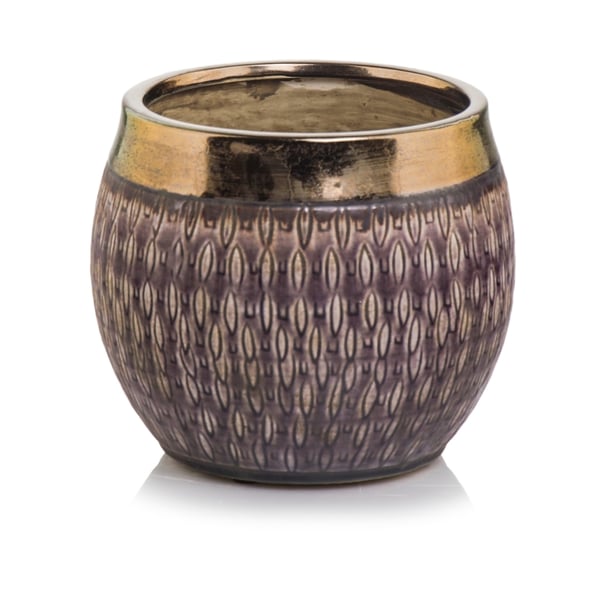 Okrugla posuda. Proizvod je izrađen od visokokvalitetne glazirane keramike - gornji rub je završen tamno zlatnom bojom, dok je središnji dio u raznim nijansama ljubičaste boje. Cjelokupni dizajn ukrašen je finim pukotinama i sitnim rupama, dodajući komadu dašak elegancije i jedinstvenosti. Složeni uzorak na zidovima privlači poglede, vrlo je atraktivan, ali suptilan i plemenit. Nježne abrazije stvaraju prekrasan učinak starenja. Više informacija možete pronaći u kartici tehnički detalji. Proizvodi su ručni rad i stvarne dimenzije mogu malo odstupati od navedenih (+/- 5%).