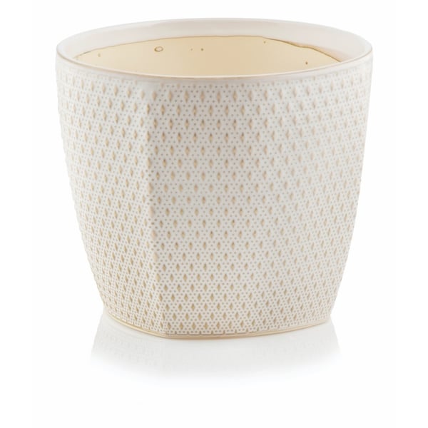 Okrugla posuda za cvijeće. Proizvod je izrađen od visokokvalitetne glazirane keramike. Više informacija možete pronaći u kartici tehnički podaci. Proizvodi su ručne izrade i stvarne dimenzije mogu malo odstupati od deklariranih (+/- 5%).