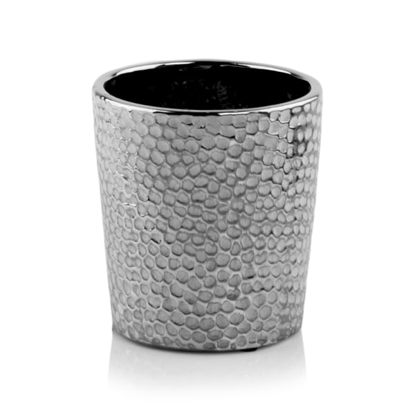 Posuda u obliku cilindra. Artikl je izrađen od keramike tankih stijenki i dovršen visokokvalitetnom zrcalno-srebrnom glazurom. Zahvaljujući procesu galvanizacije, površina proizvoda je glatka i reflektira okolinu poput ogledala. Artikli kolekcije Moon stilski su detalji koji stvaraju ekskluzivnu atmosferu u glamuroznom stilu. Stvoreni su s klijentima koji cijene ljepotu i estetiku na umu. Više informacija možete pronaći u kartici tehnički podaci. Proizvodi su ručni rad i stvarne dimenzije mogu malo odstupati od deklariranih (+/- 5%).