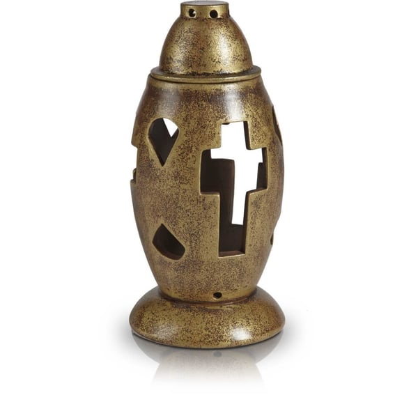 Keramički nadgrobni lampion. Proizvod je vodootporan i otporan na mraz. Više informacija možete pronaći u kartici tehnički podaci. Proizvodi su ručni rad i stvarne dimenzije mogu malo odstupati od deklariranih (+/- 5%).